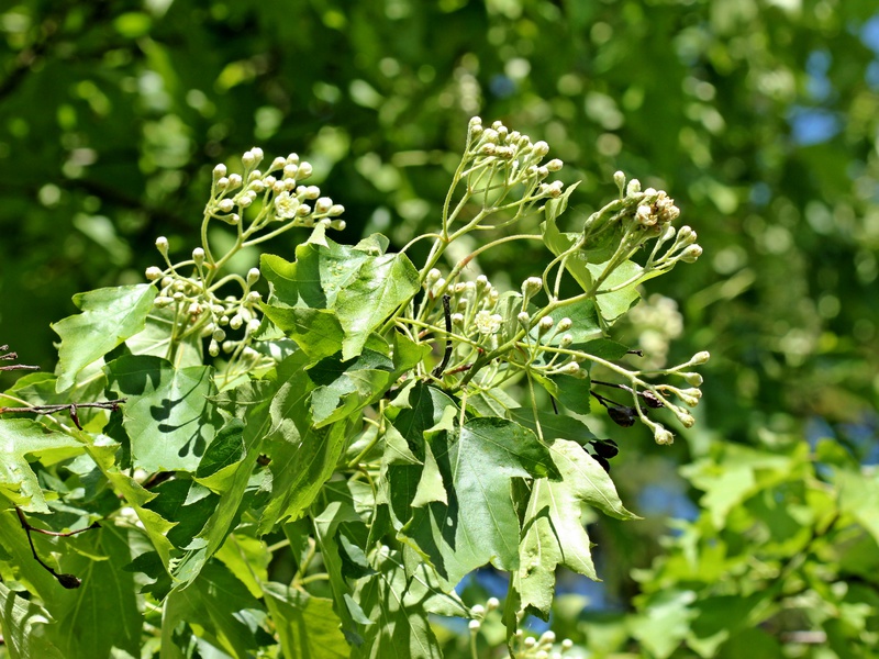 Die Blätter sehen ähnlich wie Ahornblätter aus, sie sind im Frühjahr und Sommer grün