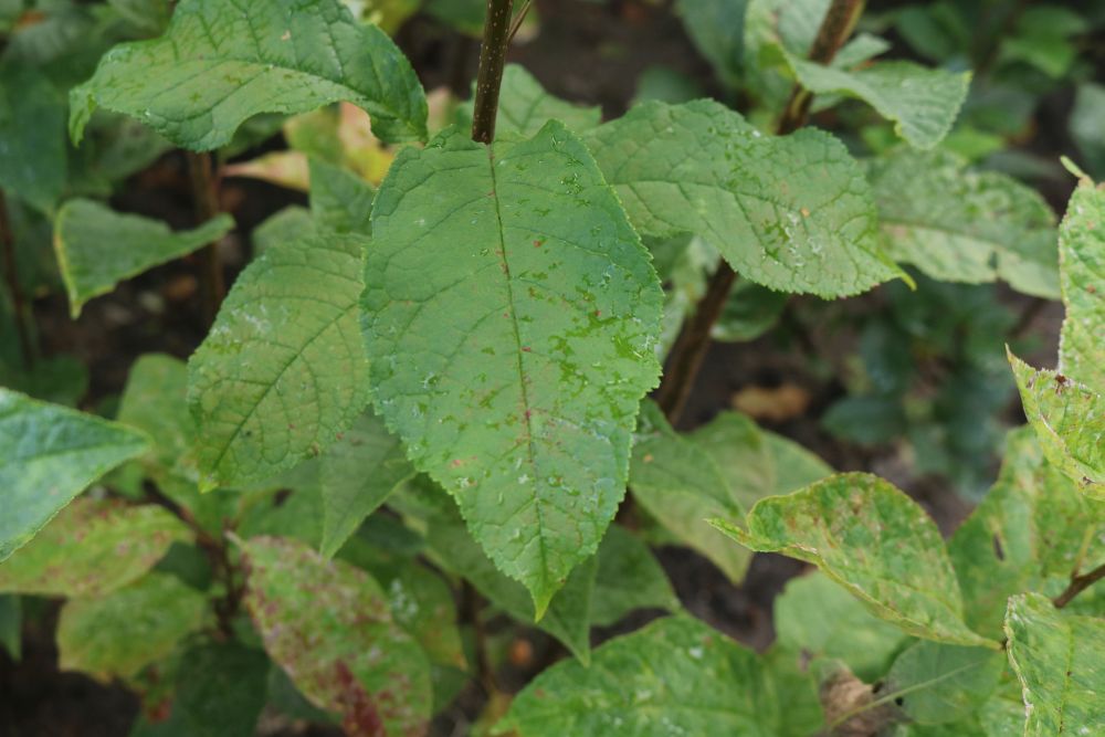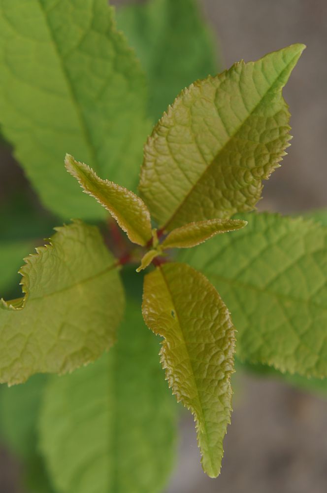 laubabwerfend Blätter: interessanter rötlicher Austrieb, später frischgrün Blätter 4-6 cm lang