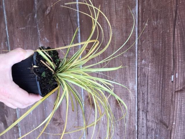 Carex "Evergold" ist ein filigranes, elegantes Gras, das bis zu 20-30 cm hoch wird. Dieses Ziergras gehört zur Familie der Japan-Gold-Segge (bot. Cares oshimensis) und vereint viele Vorteile auf sich: Carex "Evergold" ist ausgesprochen schattenverträglich und bringt auch in die halbschattige Ecke ordentlich Leuchtkraft. Denn wenn sich ein Sonnenstrahl auf das Gras verirrt, dann leuchtet es golden. Der hellgelbe Längsstreifen sorgt für das Strahlen. Dieses Ziergras wächst in symmetrischen Büscheln (der Gärtner nennst das "es wächst horstig") und hängt in eleganten Böden über. Blüte und Früchte sind eher iunscheinbar und treten gegen die schönen Blätter zurück, die sogar winterhart sind. Nur in ganz harten Wintern werden einige Blätter auch mal braun, diese lassen sich aber im Frühjahr problemlos zurückschneiden und dann treibt das Ziergras wieder frisch grün aus. Die Goldsegge Carex "Evergold" mag feuchte Böden, verträgt aber auch mal trockenere Phasen. Zu nährstoffreich oder kalkig sollte der Boden nicht sein, dafür kann aber durchaus auch Halbschatten herrschen. Unsere Topfpflanzen (= Containerpflanzen) können Sie grundsätzlich ganzährig pflanzen, direkt im kalen Winter sollte man allerdings eine Pause einlegen. Im besten Fall hatte die Pflanze vor dem Winter die Gelegeneheit, schon etwas durchzuwurzeln. Insgesamt ein robustes, anspruchsloses Gras, das man einzeln, in Gruppen oder etwas enger als Bodendecker pflanzen kann und das mit dunkelgründen, aber auch mit bunt blühenden Pflanzen wunderbar harmoniert.
