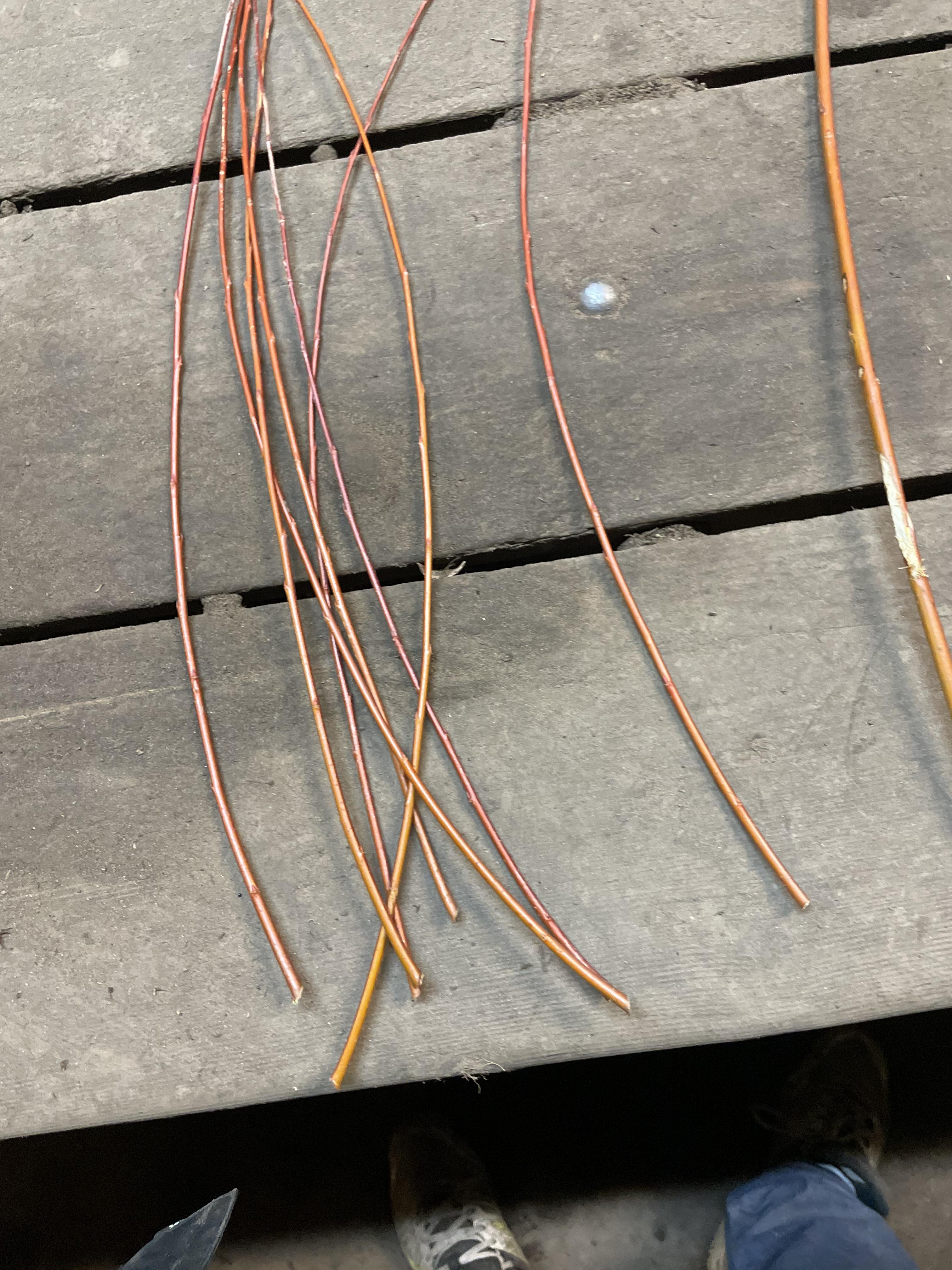 Es werden verschiedene biegsame Sorten verwendet ,wie Salix purpurea,alba.